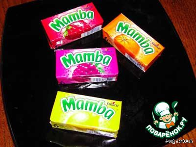 Но я использовала вместо fruit-tella конфеты mamba. Они мягче, из них проще лепить... -