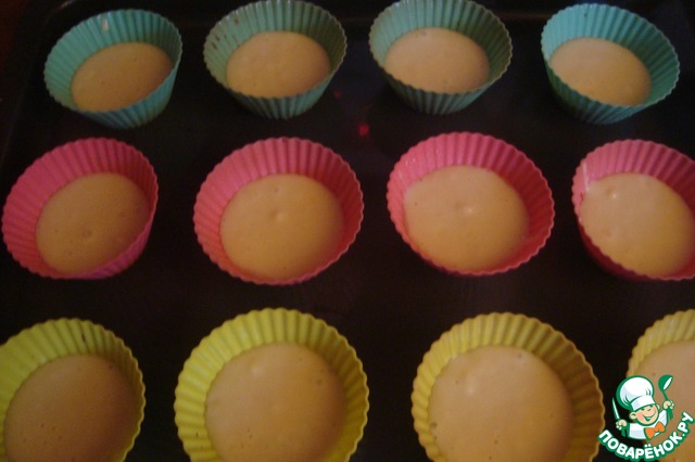 Распределяем по 1 ст. л. теста в каждую формочку. -