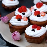 Ягоды можно использовать любые, можно использовать варенье (по 1 ч. л. на кекс).