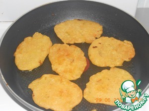 • Обжаренную капусту смешать с тестом и выкладывать ложкой на разогретую с растительным маслом сковороду.
