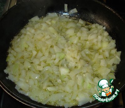 Лук почистить, порезать кубиками, обжарить в растительном масле.