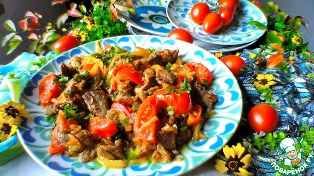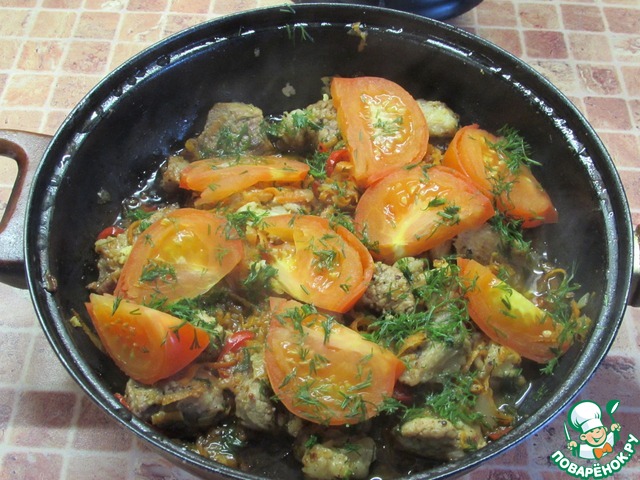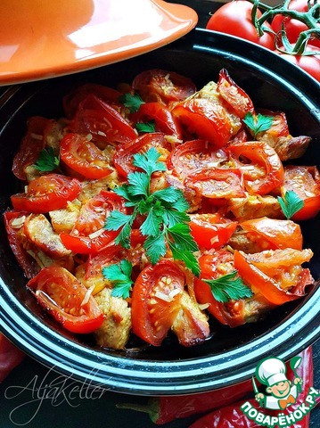 [+5]Готовила в глиняной сковороде с крышкой, сначала всё обжарила, как в рецепте, а с помидорами поставила томиться в духовку.
