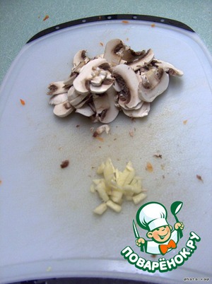 чеснок, грибы (у меня сырые, но с магазина)