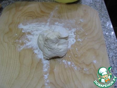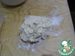 Достаем тесто, тесто получается вязкое.