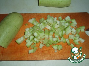 Кабачки порезать кубиками. Если кабачок старый, то его нужно почистить и удалить семена.