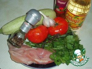 Очень простое, вкусное, диетическое блюдо. Приготовлено из куриного филе и овощей. Есть можно как с гарниром, так и само по себе. Рецепт взят из журнала "Добрые советы".