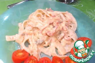 Это необычное блюдо придаст вашему праздничному столу красочности и поразит ваших гостей своей креативностью и добавит положительных эмоций. Это блюдо лучше подавать с томатным соком, какое же спагетти без томатов?
