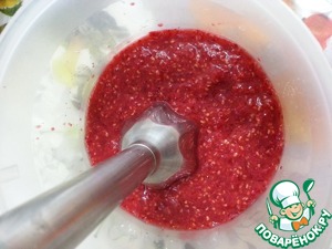 Малину помыть и немного измельчить блендером.