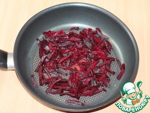 и свеклу почистить и нарезать соломкой, и также обжарить (отдельно) на сковороде. Овощи не солим!