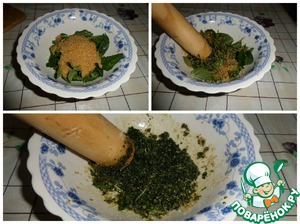 Листики мяты засыпать сахаром и потолочь.