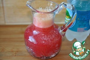 Добавляем холодную минеральную газированную воду в соотношении 1 к 2.