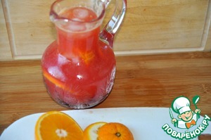 В кувшин или другую удобную ёмкость наливаем свежевыжатый сок из цитрусовых и добавляем остывший сироп.