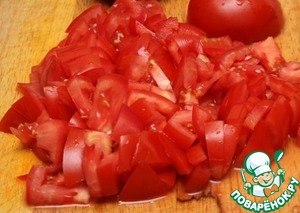 Томатное желе мы будем готовить из свежевыжатого томатного сока. Для этого нарезаем помидоры