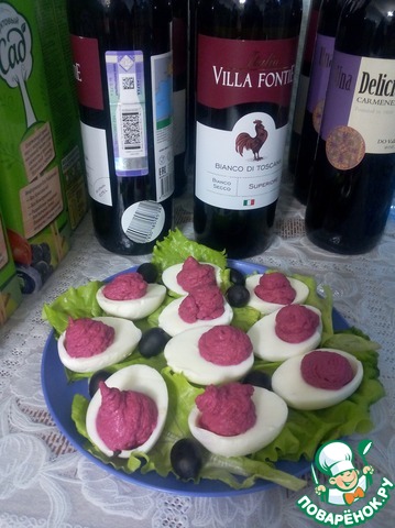 Рецепт «Яйца, фаршированные свекольным муссом»: