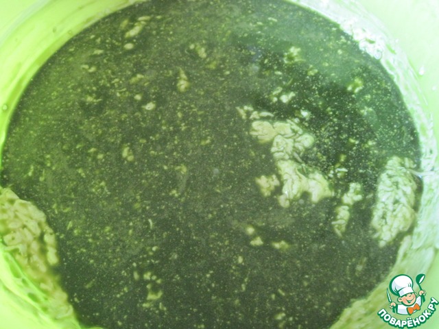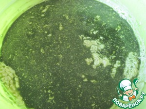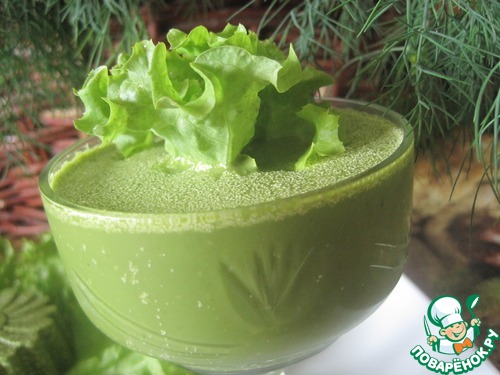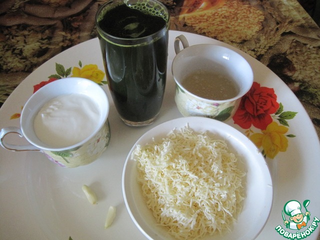 • Смешиваем сок листьев салата, сметану, сыр, измельченный чеснок, добавляем соль