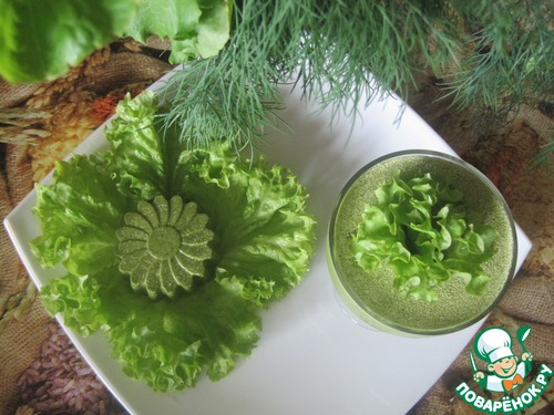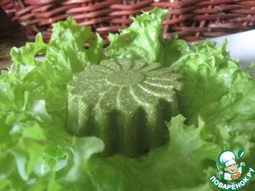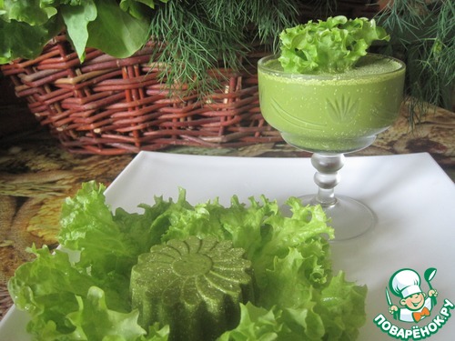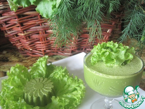 Любителей листьев салата вам сюда. Суфле готовиться со свежевыжатым соком листьев салата. Можно есть как самостоятельное блюдо, так же в качестве дополнительного гарнира к рыбе, мясу и овощам. Можно также застывшее суфле нарезать на кусочки и перемешать с любым салатом.