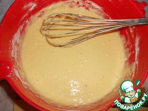 Взбить яйцо с солью и 1 ст. л. сахара. Добавить половину молока, муку и перемешать. Постепенно добавить оставшееся молоко и воду, тщательно перемешать до однородной консистении.