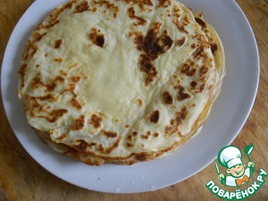 Обжаривать блинчики на растительном масле на разогретой сковороде с обеих сторон.