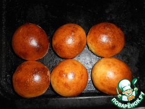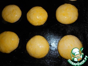 • Противень смазать маслом, сформовать маленькие круглые булочки и выложить их на смазанный маслом противень. Дать расстояться в теплом месте 30 минут.
