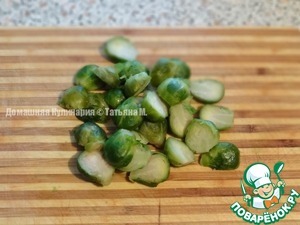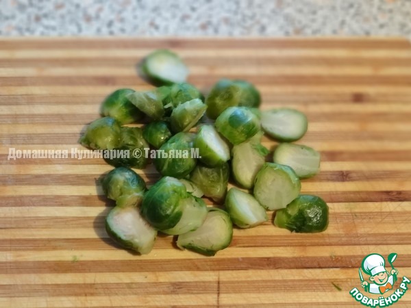 Брюссельскую капусту отварить в подсоленной воде - 8 минут, дать остыть;