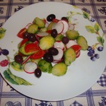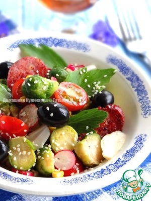Рецепт «Овощной салат с брюссельской капустой и колбасой»: