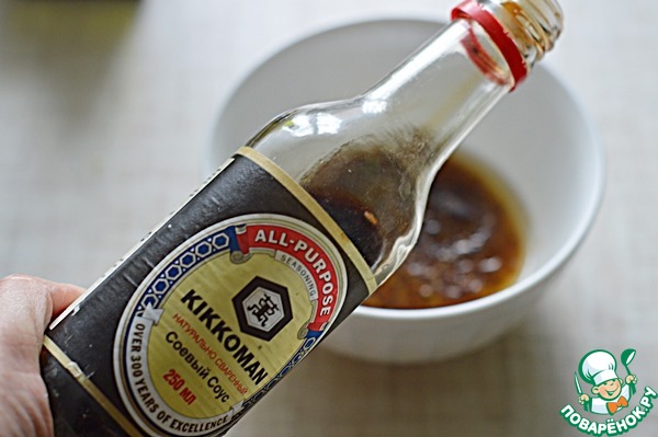 3. Для заправки смешать масло, соевый соус, горчицу, лимонный сок и мед. Посолить и поперчить по вкусу.