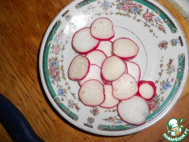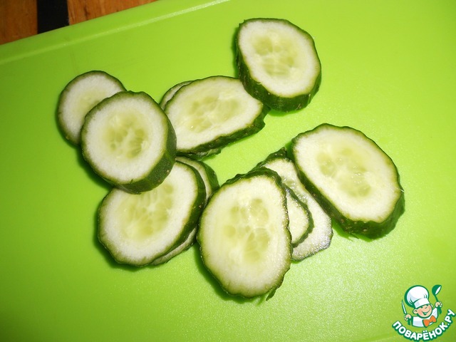 Огурец вымыть, обсушить и нарезать тонкими кружочками.