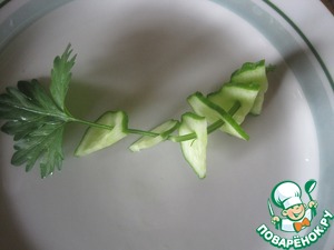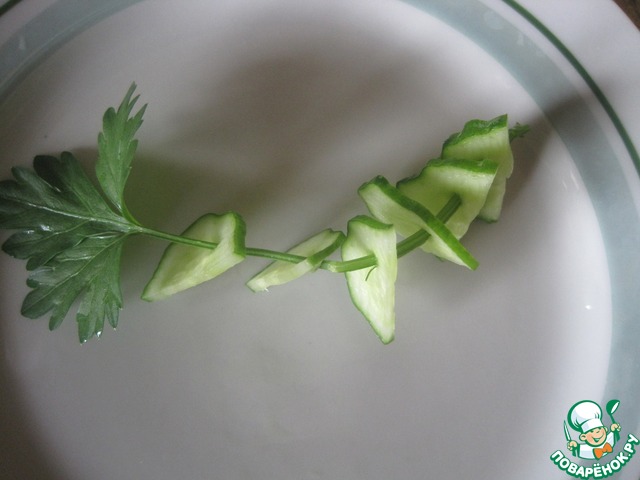 Огурцы прокалываем и вдеваем стебель петрушки