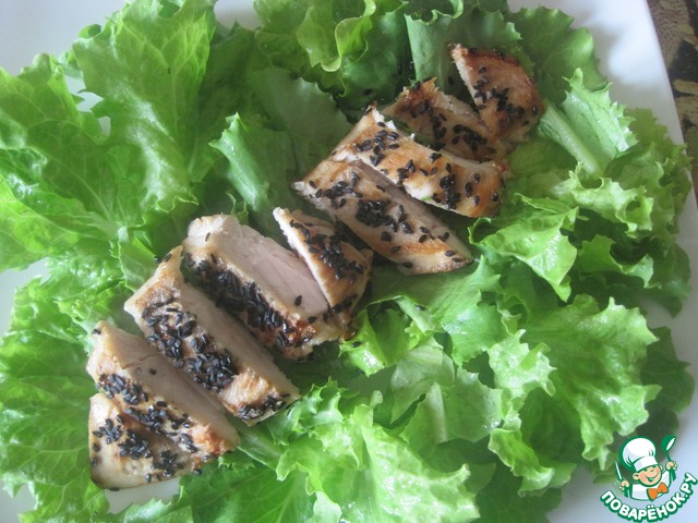 По середине нарезанное куриное филе