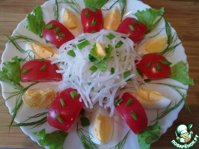 Овощной салат с дайконом и соевым соусом "Kikkoman" - это блюдо для тех, кто по настоящему заботится о своем здоровье. Он легкий, но очень вкусный и сочный. В нем много витаминов и полезных веществ, у него потрясающий оригинальный вкус.