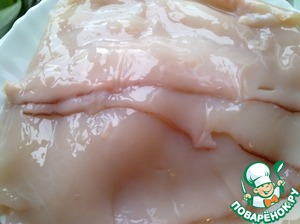 Тушки кальмаров моем, чистим (если необходимо), разрезаем.