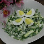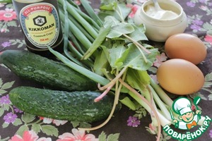 Понадобится доступный и бюджетный набор продуктов. Огурцы, зелень вымыть, обсушить. Яйцо сварить.