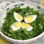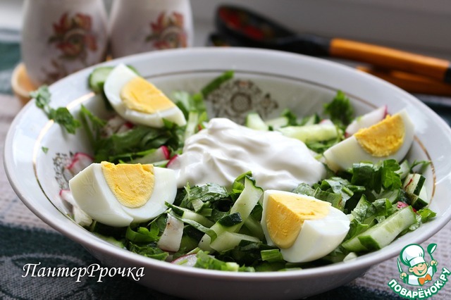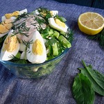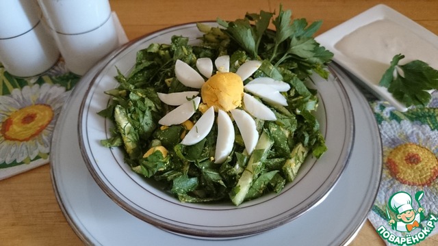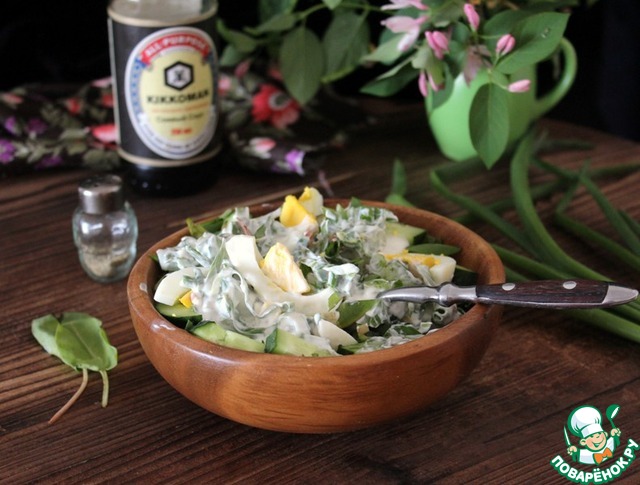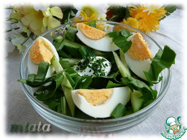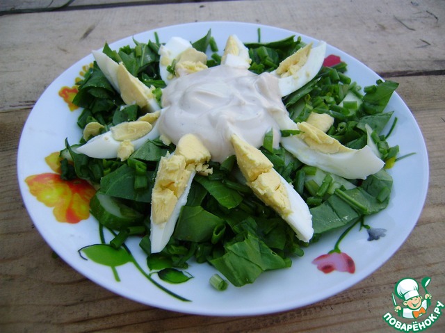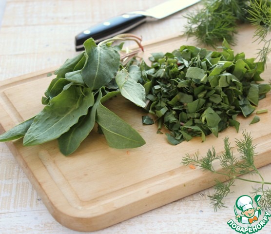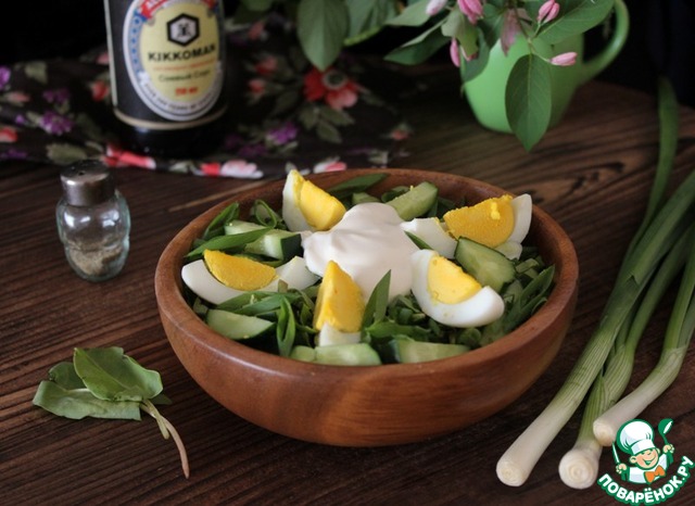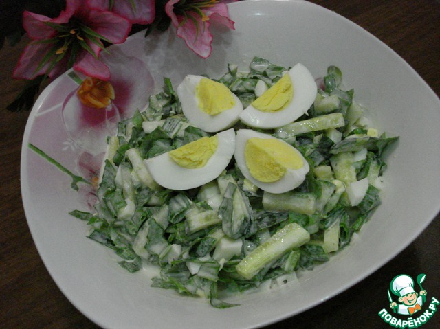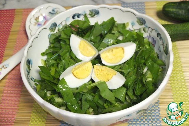 Пучок щавеля нарезать. Он придаст салату удивительно вкусную нотку.