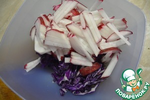 Порезать соломкой редис,