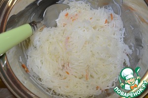 Если он меньше 0,5 мм, то достаточно просто залить ее кипятком, накрыть крышкой и оставить на 5 минут. После откинуть ее на дуршлаг и слегка промыть под струей холодной воды. Если же лапша толще полумиллиметра, нужно готовить фунчозу на огне. Положить ее в присоленный кипяток и варить не более 3-4 минут, чтобы она не потеряла форму. Затем слить воду и так же промыть. Смешать с лимонным соком. И дать немного настояться.