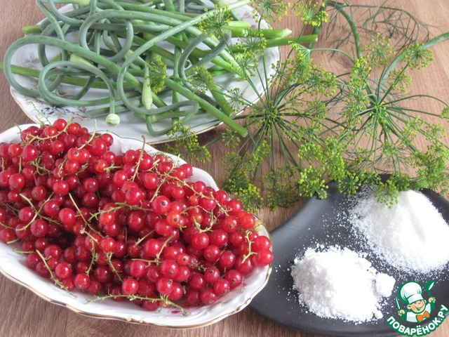 Приготовим необходимые продукты для приготовления чесночных стрелок с соком красной смородины.