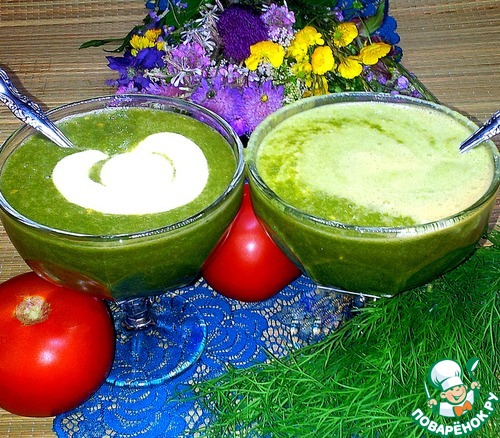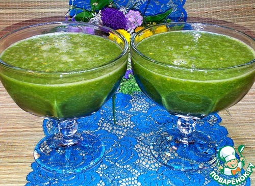 Смузи готовила в комбайне. Черешки сельдерея и укроп нарезала.
