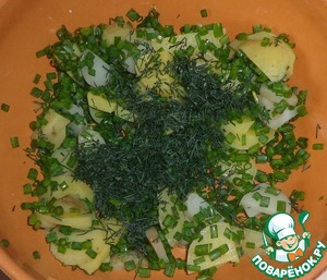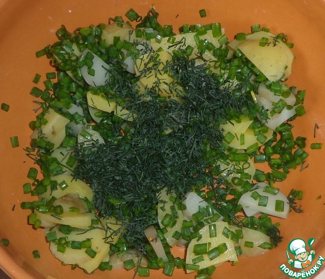 Добавляем мелко нарезанный укроп или петрушку. Выбираем на свой вкус.