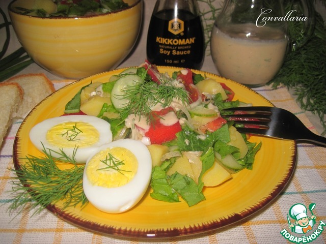 Картофельный салат с соусом из ряженки
