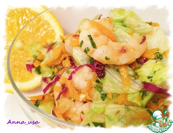 Вкусный салат с креветками и цитрусовой заправкой.