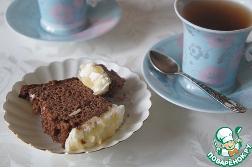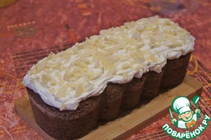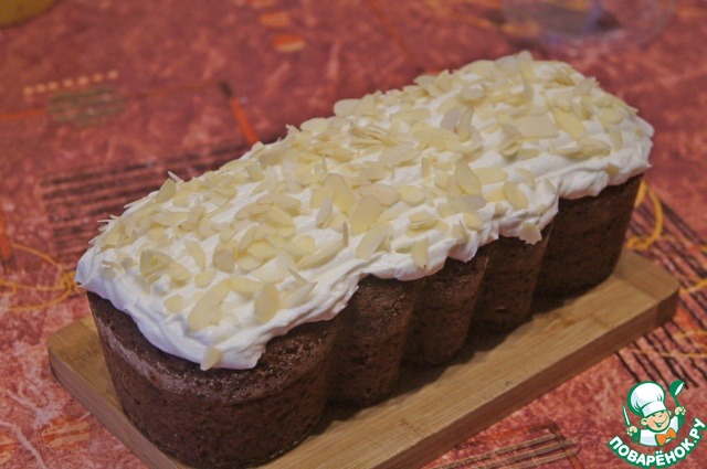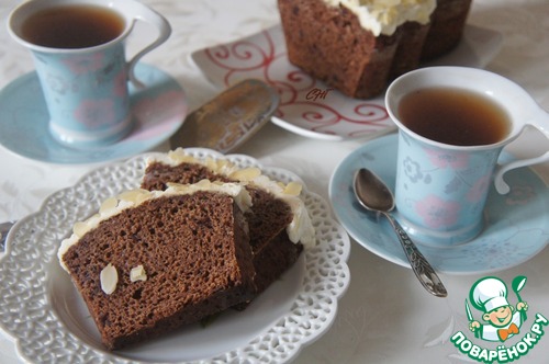 Рецепт от Ирины Чадеевой. Опубликовала Елена Шоколад, которая от себя добавила крем и миндальные лепестки, очень хорошо оттенившие вкус кекса. Спасибо им обеим за интересный, необычный кекс с нестандартным вкусом, немного напоминающим коврижку.