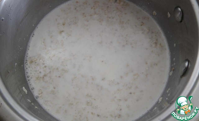 В блендер сложить клубнику, мяту, сгущенное молоко, овсяные хлопья, мороженое залить частью молока и начать взбивание постепенно добавляя остальное молоко. Из всего набора продуктов получается 1,5 л смузи.
