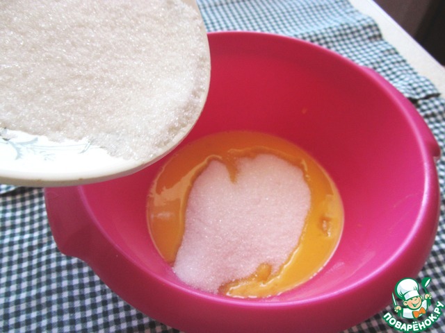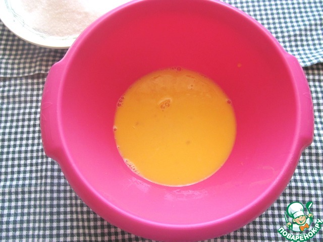 Вбиваем яйца в большую миску, взбиваем их до пены 3-5 минут.