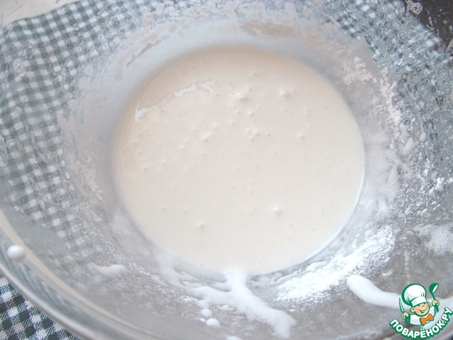 Добавляем гашеную уксусом соду, взбиваем тесто.