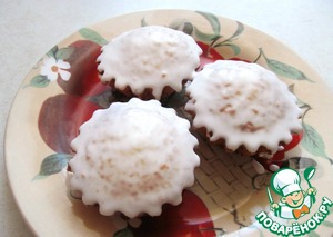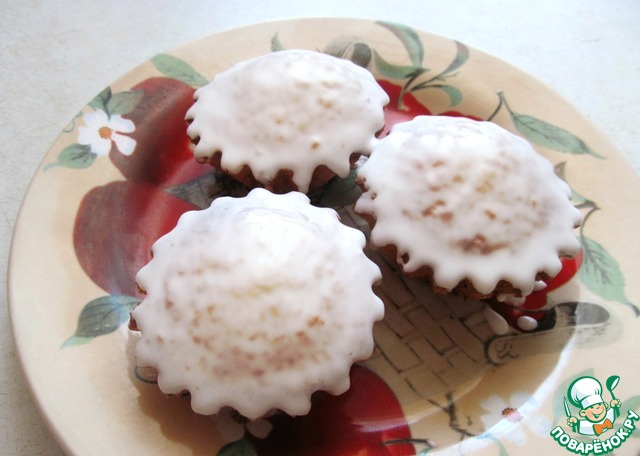 Достаем из форм наши кексики, поливаем белковой глазурью, готово)
