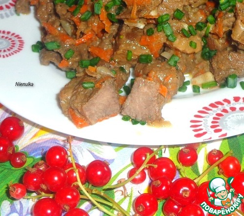Мясные кусочки, тушеные в свежевыжатом соке из красной смородины.