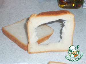 У 4х кусочков тостерного хлеба вынуть мякиш,