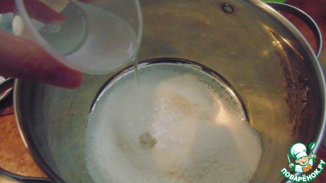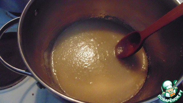 Ставим вариться наш сироп на небольшой огонь до закипания, при это постоянно помешивая...