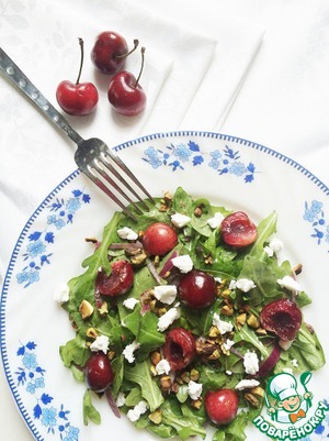 Рецепт «Салат с черешней, козьим сыром и фисташками»: