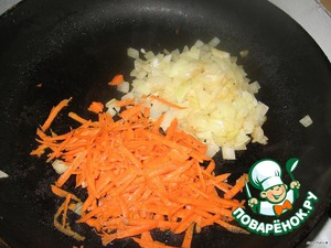 Нашинковать лук и натереть на терке морковь. Обжарить на раст. масле.